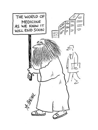 Man With Sign That Reads The World Of Medicine As We Know It Will End So Cartoon Premium Giclee Print Aaron Bacall Allposters Com